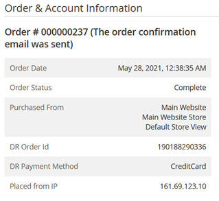 | DR Order ID           | <p>Lists the primary order identification number in Digital River’s systems. <br><strong>Note</strong>: The Magento Commerce ID is a secondary ID in Digital River’s systems. <img src="https://content.gitbook.com/content/Q1g7QCjLhKiSVA14pQbB/blobs/ovywJFyKg7B6v2wy0nRM/DR%20Order%20ID%20and%20DR%20Payment%20Method.png" alt="" data-size="original"> </p>                                                                                                                               |