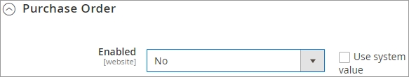 Select Purchase Order. Then set Enabled to No. Note that the Digital River 3.1.3 extension release supports the Purchase Order payment method.