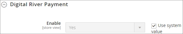 Select Digital River Payment. Then set Enabled to Yes. Note that you can change the title. We recommended typing