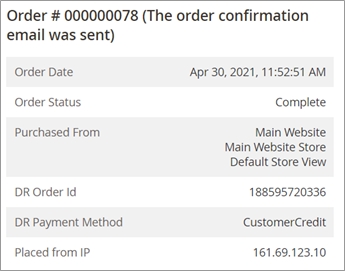 With Store Credit, when a shopper pays for an order using a combination of Gift Card and one of the other supported payment methods, the DR Payment Method will be the non-Gift Card payment instrument (for example, PayPal). When the shopper pays an order entirely with a Gift Card, the DR Payment Method will be CustomerCredit.