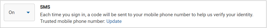 **Important:** When you turn this authentication method **Off**, you lose your saved phone number.