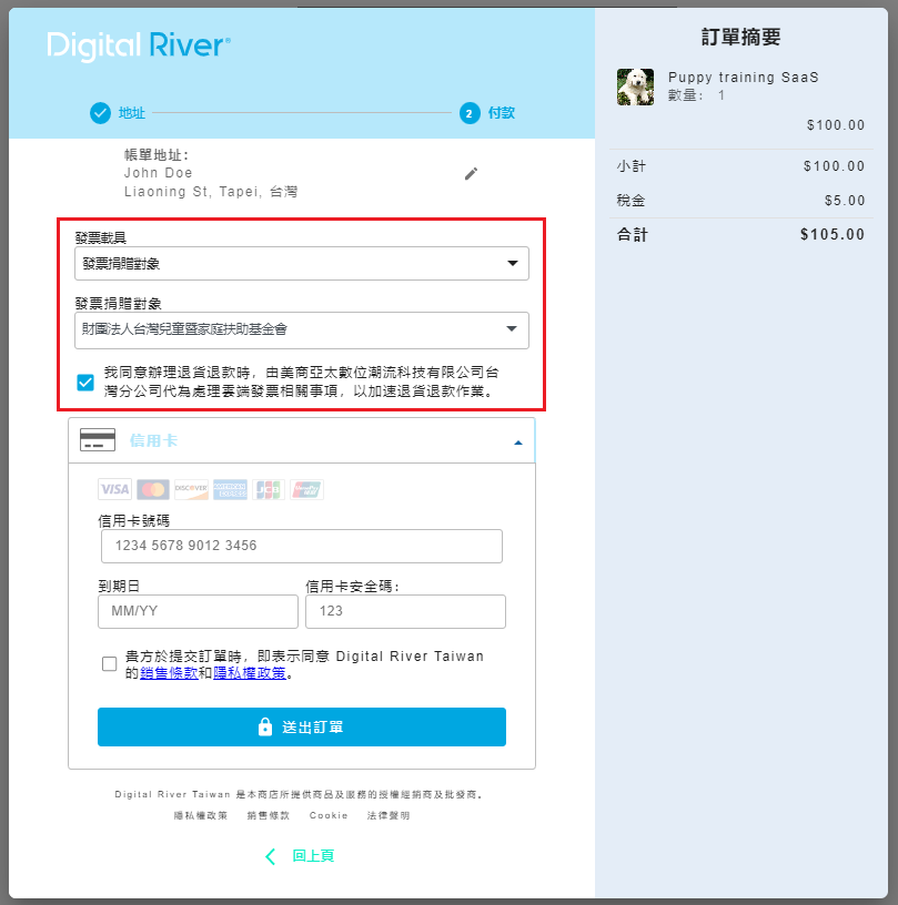 By pairing one of Digital River's [low-code checkout solutions](https://docs.digitalriver.com/digital-river-api/integration-options/low-code-checkouts) with our [e-invoicing service](https://docs.digitalriver.com/digital-river-api/using-our-services/e-invoicing), you can make domestic sales in Taiwan that comply with that country's data collection requirements.