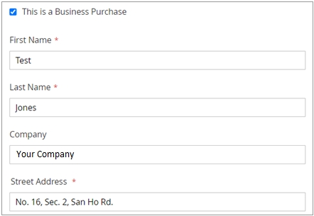 The Digital River Extension automatically displays the required Invoice fields during checkout where appropriate (for example, for local online sales to shoppers in Taiwan). During checkout, the type of invoicing information you need to collect depends on whether the transaction is for an individual or a business.