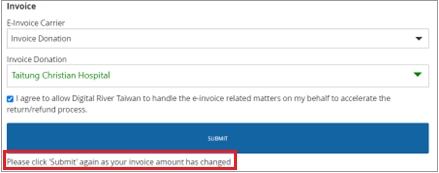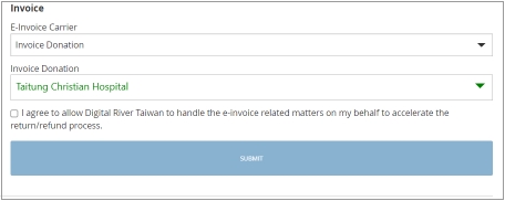 Select the checkbox to allow Digital River Taiwan to handle e-invoice related matters on your behalf.
