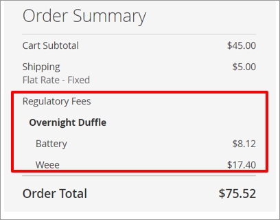 Specific regulatory fees per item will appear on the order in the Magento Admin UI.