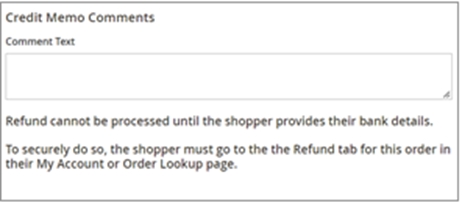 You assist the shopper's refund process by initiating a credit memo (for example, as in the role of a client's Customer Support Team). Once you have initiated the credit memo, the shopper then goes back to the commerce site to enter their banking details. Once both of these tasks are completed, Digital River can then complete the refund.