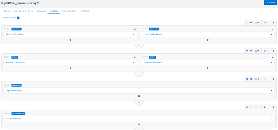 This flow uses Custom.DigitalRiverProcessPriceBooks custom job step. Set the following configuration parameters for this job step: