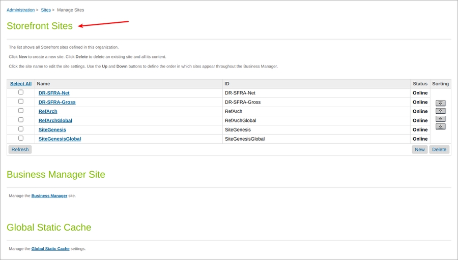 Select Sites, and then click Manage Sites. Select your site from the list named Storefront Sites.