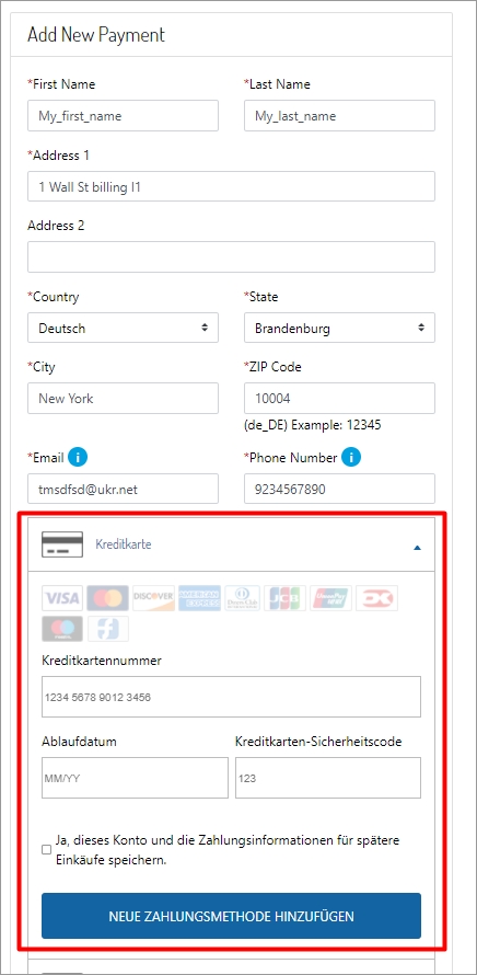 Use the stored payment instruments (storedPaymentInstruments.isml