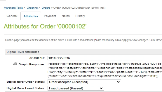 Scroll down to the Digital River section with the Global Commerce Customer ID attribute. It should not be empty.