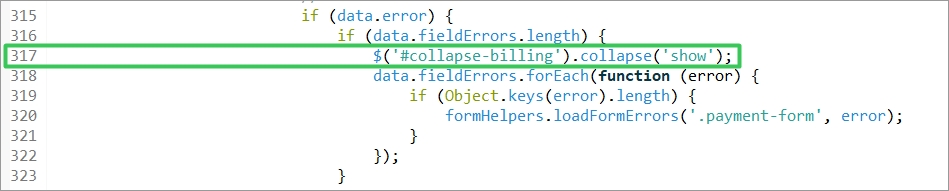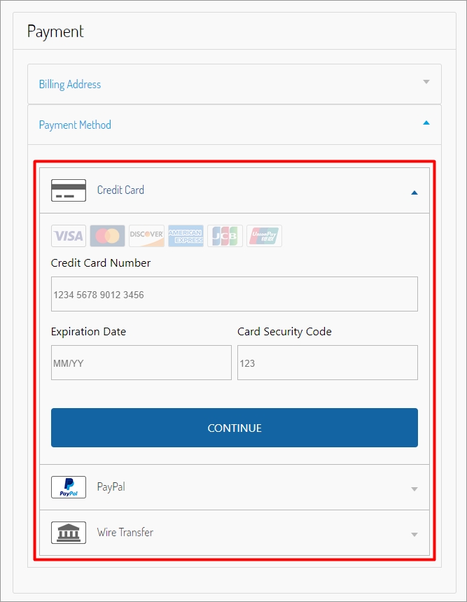 Added the accordion components to the billing page. In this example, accordion billing is used by extending the tag with id="accordionBilling"