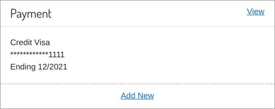 To update the billing address, click Update Address and complete the fields. To add a new billing address, click Add New, complete the fields, and click Save.