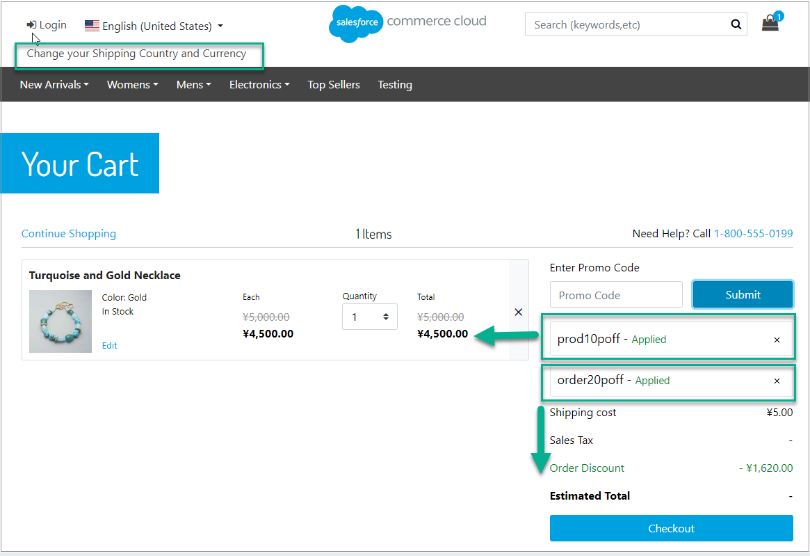On the Mini-Cart and Cart page, the shopper can make updates, and the dynamic pricing is still reflected. On the Cart page, the shopper can apply promotions (coupons) to the products from the cart, and the dynamic pricing is still reflected.