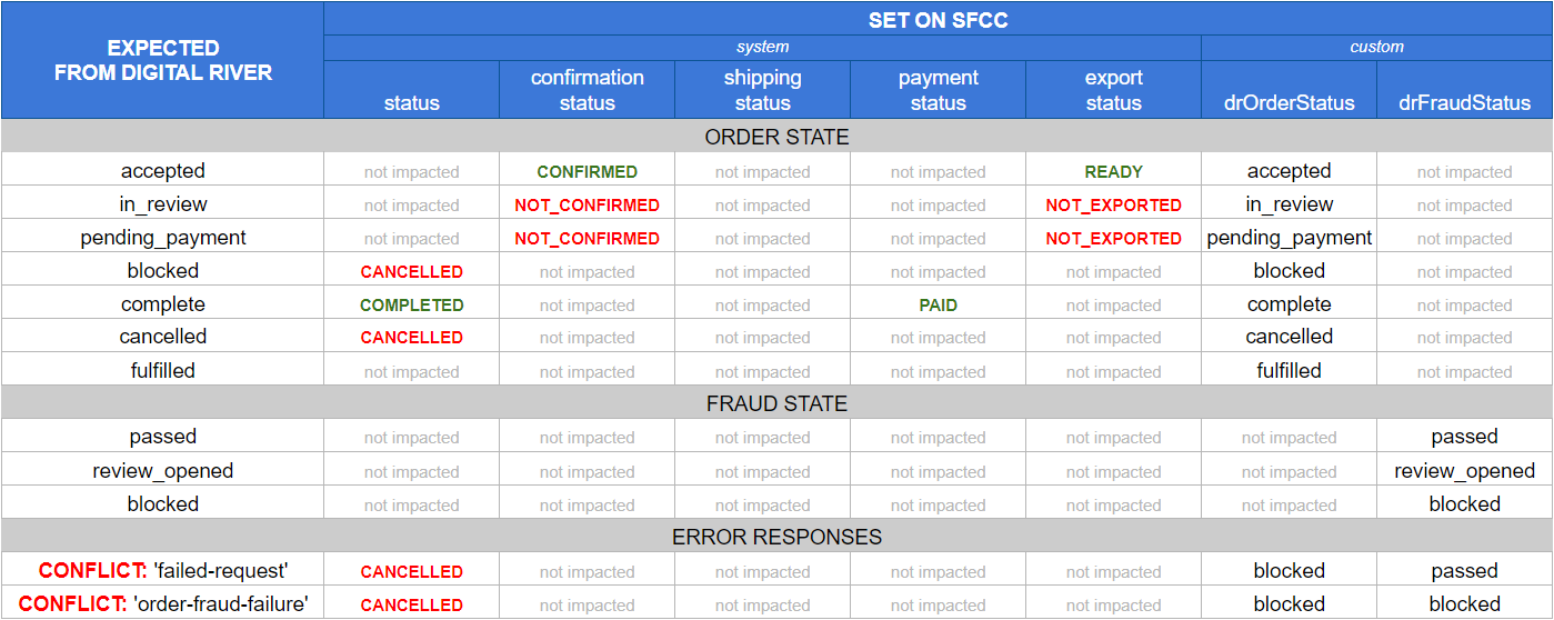 DROrderCancellationOnErrorRequestcustom object, created during a failure, to store information about the Digital River order that should be cancelled. The custom site preference Cancellable States specifies DR order states that are valid for attempted cancellation. The lifecycle of these custom objects is determined by the Lifespan of DROrderCancellationOnErrorRequest custom site preference, which specifies the duration in days before the custom object is deleted.
