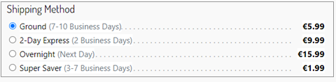 The following examples show the information displayed based on the choice of shipping method for physical and digital products: