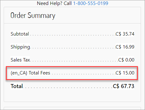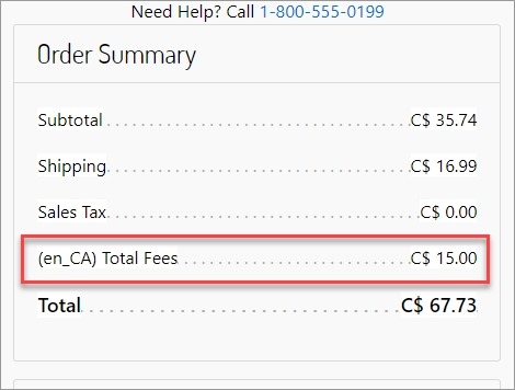 The creation and management of regulatory fees are outside the scope of the LINK Cartridge. Work with your Digital River Project Manager to set up regulatory fees. Once the fees are configured, the LINK Cartridge displays any applicable fees in the Order Summary when the shopper goes to the Checkout page.