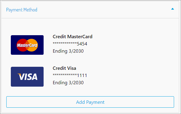 The following image shows how payment methods will appear on the billing page: