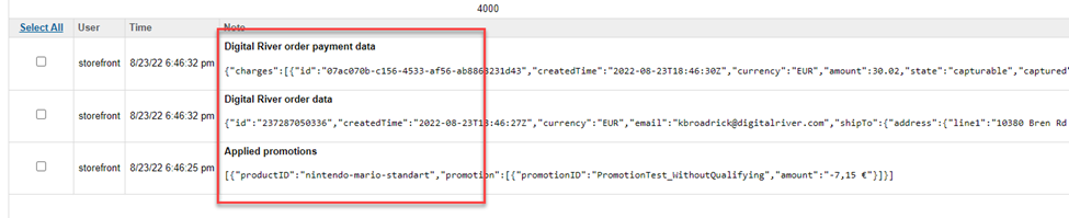 Descriptions of all removed discounts have been added to the order notes. The report includes the product ID, the promotion's name, and the promotion discount amount.