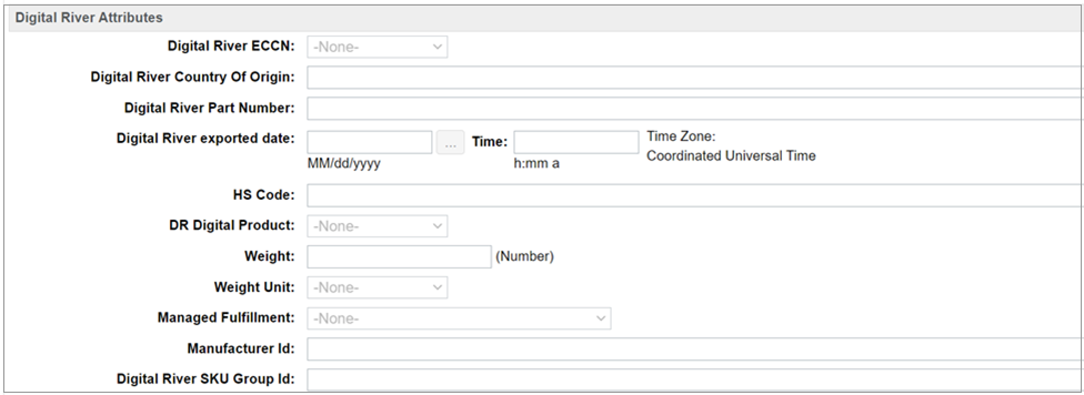 Configure the Digital River custom attributes here:
