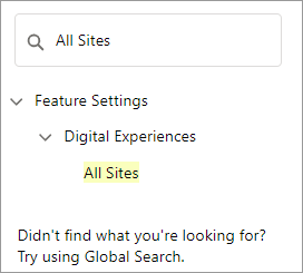 2. Type `All Sites` in the **Quick Find** field and click **All Sites**. The All Sites page appears.