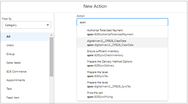 Type 'ClearData" and select digitalriverv3__DRB2B_ClearData.