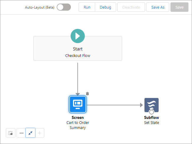 Scroll down and click Subflow - Checkout Summary. The Flow Builder opens in a separate tab.