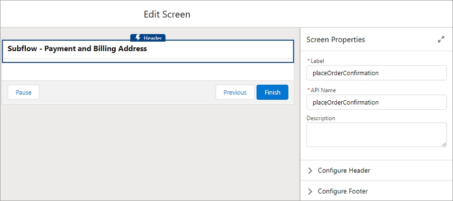 placeOrderConfirmationin the Label field on the Edit Screen dialog.