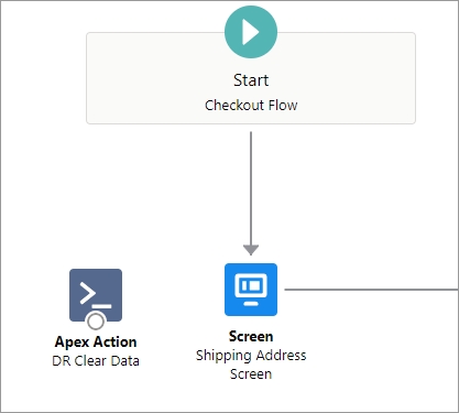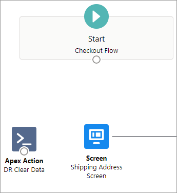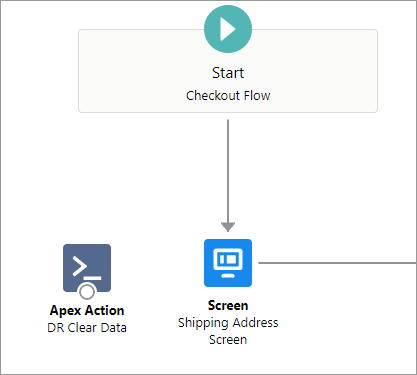 Click the circle below Start Checkout Flow and drag it to Apex Action DR Clear Data.