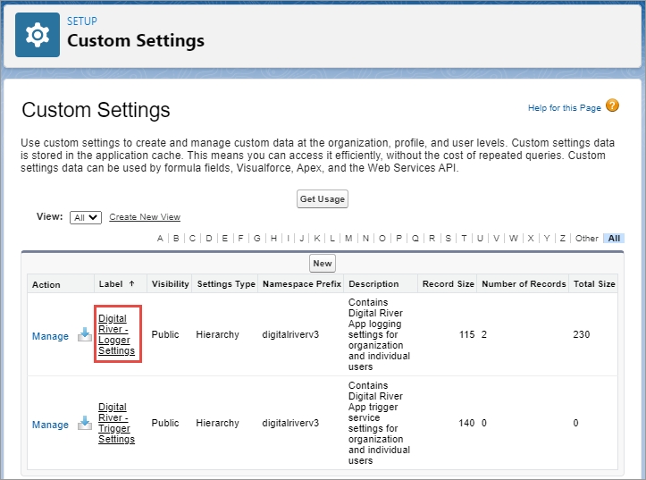Custom Settingsin the Quick Find field and click Custom Settings.