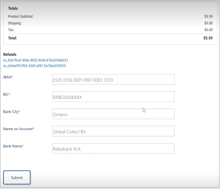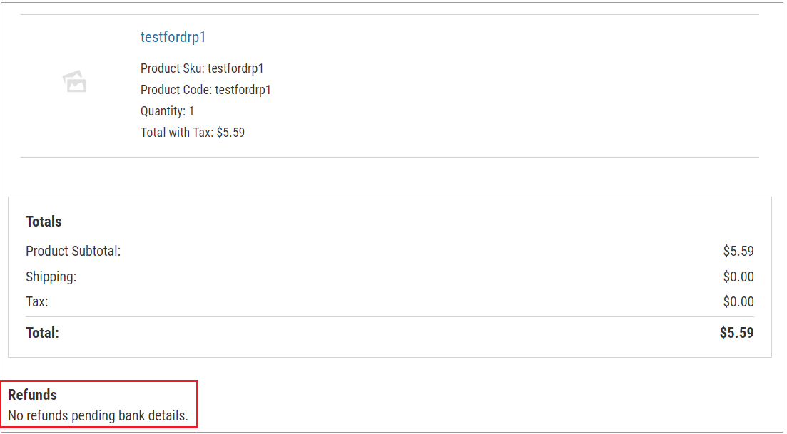 If there are additional pending refunds, return to the My Order page and repeat these steps. Once links have been processed with banking details, they are no longer available for shoppers. For example: