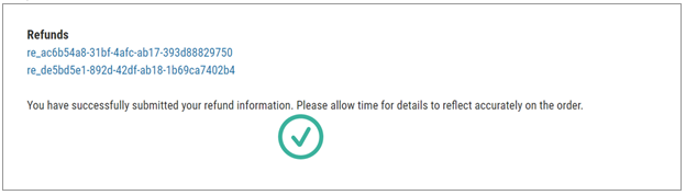 Click Submit. Allow some time for the refund to be processed. The shopper sees a green success message if the refund is processed successfully.