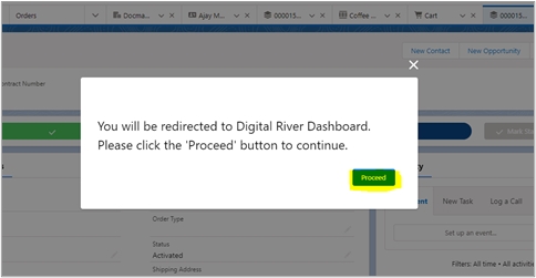 Click Proceed. You will be redirected to the Digital River Order page on the Dashboard.