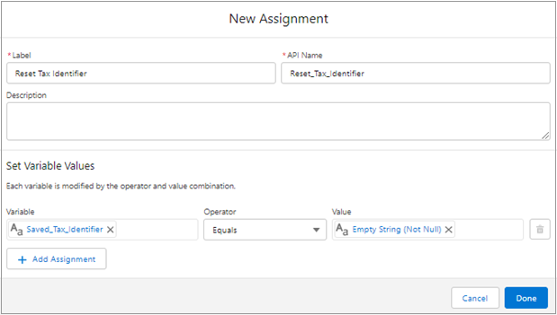 Add the Reset Tax Identifiers (Assignment) node