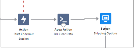 Connect the Start Checkout Session (Action) node to the DR Clear Data (Apex Action) node.