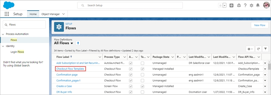 3. Click Checkout Flow Template. The Flow Builder opens in a separate tab.
