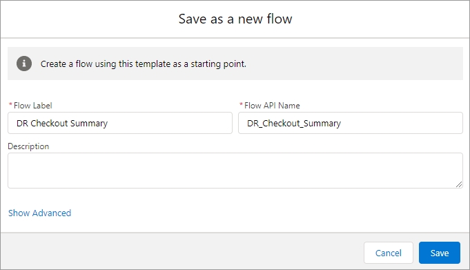 Scroll down and click Subflow - Checkout Summary. The Flow Builder opens in a separate tab.
