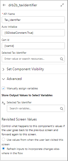 {!Saved_Tax_Identifier}.Click Advanced, select the Manually assigned variables check box, and type