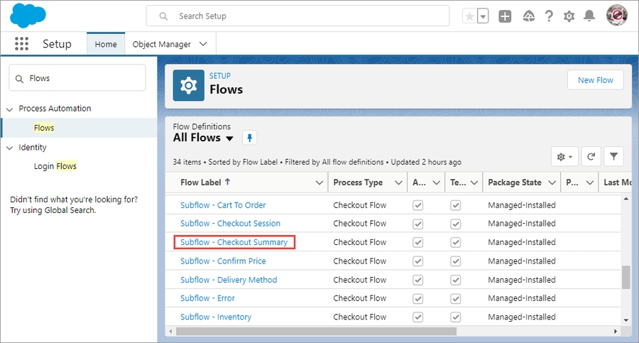 Scroll down and click Subflow - Payment and Billing Address. The Flow Builder opens in a separate tab.