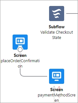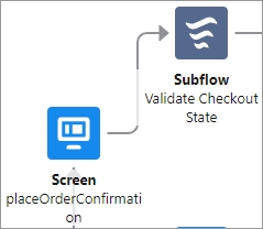 Click the circle below placeOrderConfirmation custom screen) and drag it to the Validate Checkout State subflow.