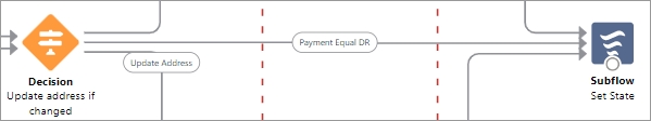 Click the circle below the Update Address if changed decision element and drag it to the Set State subflow.