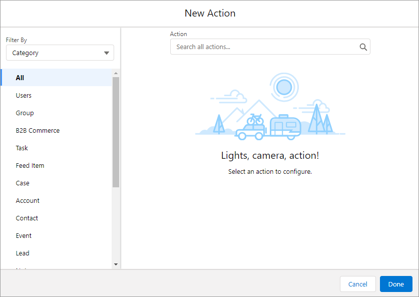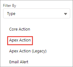 Select Type from the Filter By dropdown list and click Apex Action.