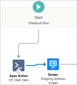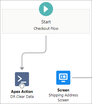 Click the circle below Start Checkout Flow and drag it to Apex Action DR Clear Data.