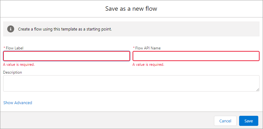 Enter the name of the custom subflow in the Flow Label field (for example, DR Shipping Address) and the subfIow API name in the Flow API Name field, and click Save.