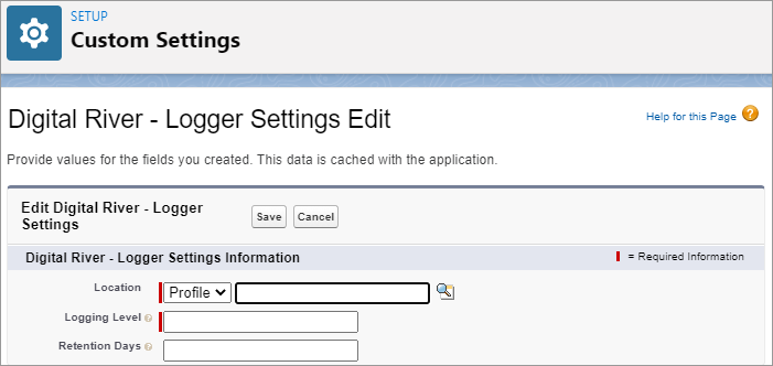 Enter values for the Logging level and Retention Days. Valid values for the Logging Level include DEBUG, INFO, WARN, ERROR, and NONE.