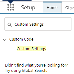 Custom Settingsin the Quick Find field and click Custom Settings.