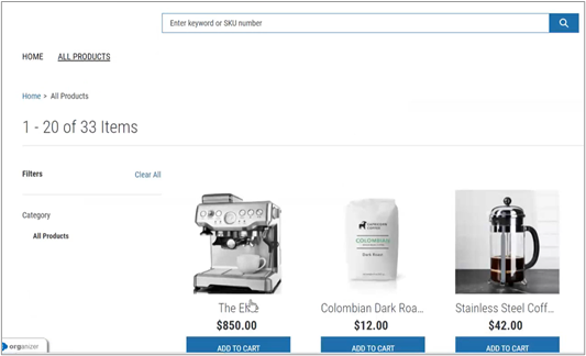 Enter the keyword or SKU number in the search field, or select the products to add to the cart.