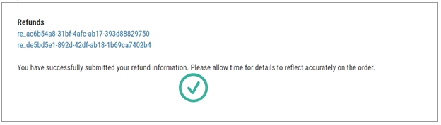 Click Submit. Allow some time for the refund to be processed. The shopper sees a green success message if the refund is processed successfully.