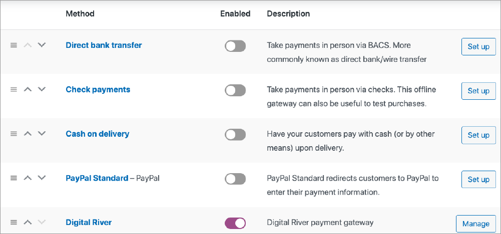 You will notice Digital River is already enabled. We keep the Digital River payment option enabled by default.